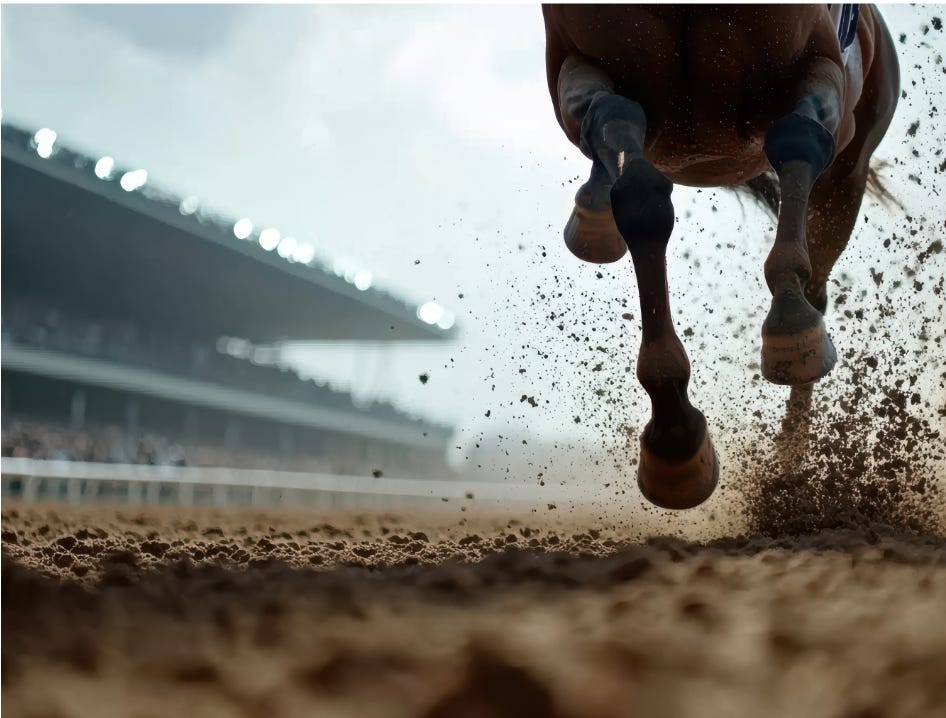 A 25-length easy win at 37-ish mph. Effortless—if careful breeding, the skilled eyes of horse trainers, the soft heart and wealth of his owner, and a world-class jockey meant nothing. Secretariat himself had a love for speed, the just-right bone structure, and a heart bigger than most (literally and figuratively). He thrilled us all that day. Big Red was larking about, having fun being the fastest horse on the block. Ron Turcotte said he never used the whip once.